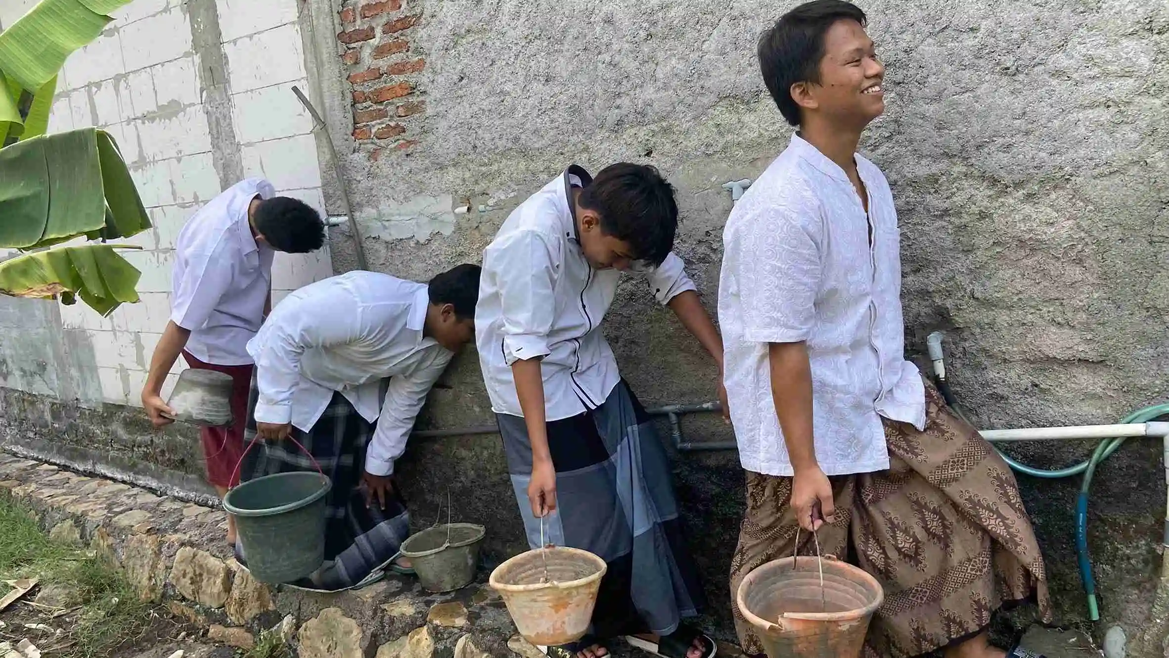 Ribuan santri pelosok Negeri berjuang kesulitan untuk mendapatkan air bersih dengan berjalan jauh ratusan meter di setiap harinya hanya untuk menimba air. Tangan kecil mereka gemetar membawa seember air untuk memenuhi keperluan sehari-hari seperti wudhu, mandi, bahkan minum pun dengan air tersebut.